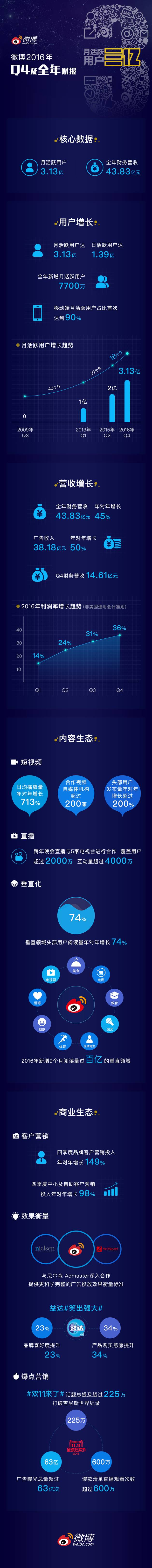 2月23日,新浪微博发布2016年Q4及年度财报: