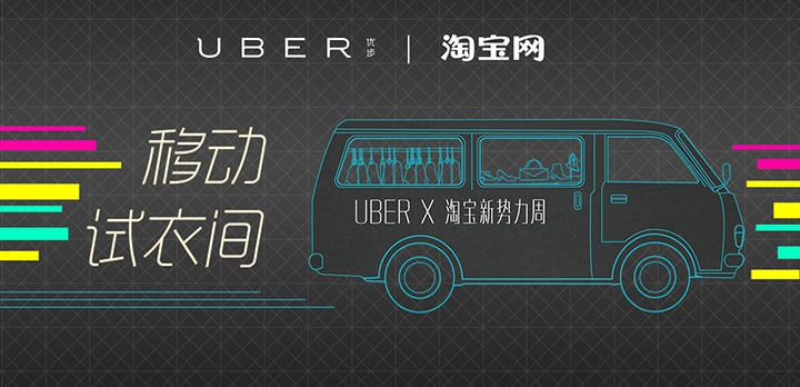 2015年8月22-23日,UBER与淘宝共同打造了一个线下场景——移动试衣间。在杭州、成都、广州三地Uber用户可一键呼叫体验神秘专业人士的一对一换装搭配指导和全新造型打造。通过共享经济的方式,以UBER为载体,通过专业的造型师为用户进行一对一搭配指导,这是淘宝线上平台在线下营销的一个不错亮点场景。