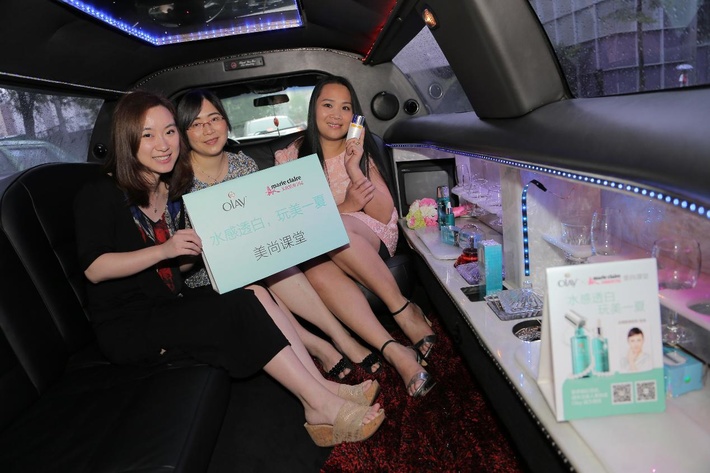 UBER与Olay合作推出“美丽专驾”,帅哥当司机开着豪华加长林肯,接一名幸运儿去高大上的酒店参加顶尖VIP肌肤护理课堂。